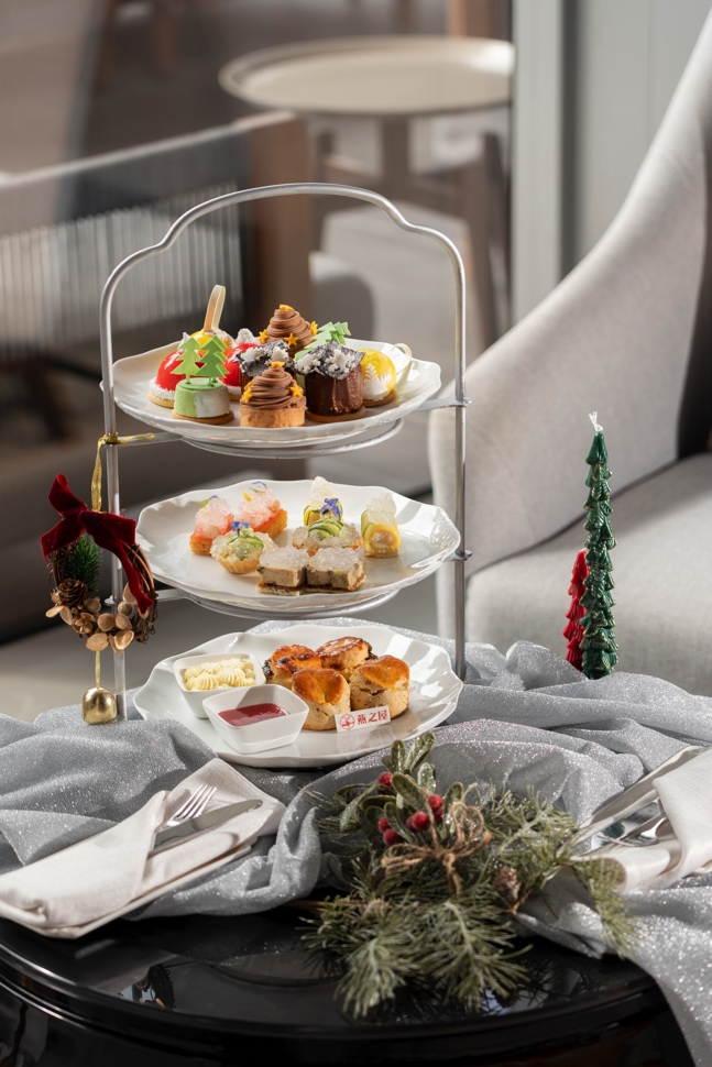 本次聯(lián)名下午茶精選燕之屋印尼核心產(chǎn)區(qū)燕窩,由廣州保利洲際酒店廚師團(tuán)隊(duì)創(chuàng)意烹制,呈現(xiàn)一系列兼具視覺(jué)美感與味覺(jué)層次的燕窩雅點(diǎn)。燕窩鵝肝批配無(wú)花果醬,鵝脂豐潤(rùn)與燕窩清雅相映成趣,無(wú)花果醬帶來(lái)甘美回韻;蟹肉龍蝦燕窩卷,海洋珍饈裹藏絲縷燕窩,鮮美與溫潤(rùn)完美交融,共譜新章;燕窩甜蝦配薄脆,鮮嫩甜蝦邂逅彈潤(rùn)燕窩,再搭配金黃薄脆,演繹出剛?cè)岵?jì)的味覺(jué)哲學(xué);牛油果燕窩球配青蘋果啫喱,口感層次豐厚,宛若自然韻律。四道匠心之作,譜寫咸點(diǎn)風(fēng)雅,搭配圣誕栗子撻、圣誕草莓奶酪小點(diǎn)等甜品系列,營(yíng)造甜蜜浪漫氛圍,勾勒節(jié)日詩(shī)篇。